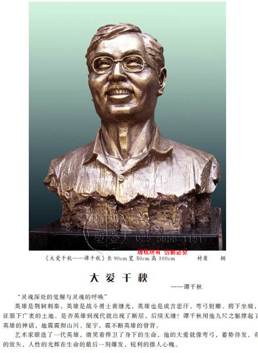 南京雕塑家東郭教授為512汶川地震烈士教師-----譚千秋鑄銅人像雕塑